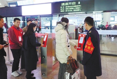 1月21日下午,记者在杭州火车东站候车大厅南北通道看到,为提升旅客进站速度和实名制验证效率,杭州火车东站在南北门用上了人脸识别验证系统,进站旅客只需刷一刷脸和身份证,即可快速核验进站,加快了旅客安检通过速度。见习记者邹伟锋 摄
