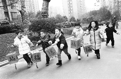 做完灯笼,小朋友们高兴地提着大红灯笼四处“晒宝”,乐得合不拢嘴,场面好不热闹。