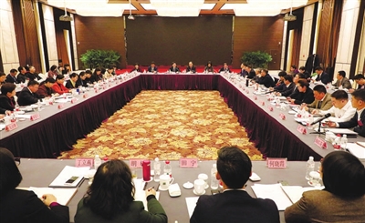 | 联组讨论会议现场。 见习记者邹伟锋 摄 |