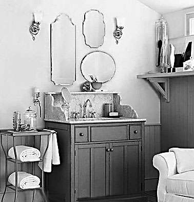 通过巧妙的设计,镜子也可以变身收纳空间。面积较小的卫浴间,可以采用嵌入式镜柜,镜柜表面看似是一面挂在墙上的普通镜子,其实后面暗藏玄机,打开镜子你会发现在里面还设计了一个储藏柜,足以容纳各种洗漱用品,空间随之得到扩展。
