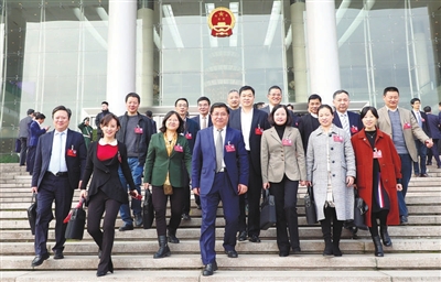 | 大会闭幕后,工会界别的省政协委员意气风发地走出省人民大会堂。 见习记者邹伟锋 摄 |