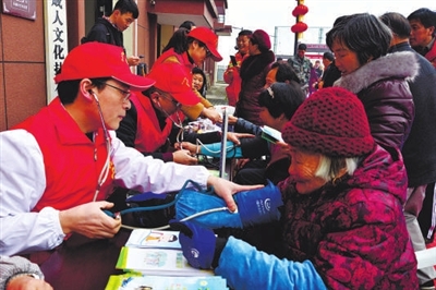 近日,江山市碗窑乡卫生院的6名医生,放弃春节休息时间,开展节日送健康为民服务活动。为村民们量血压、送健康手册、诊治疑难杂症等,受到了村民的欢迎。