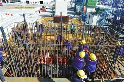同样春节不停工的DSSG02标也不甘落下,几十米高的主塔上工人们手脚不停,一如既往地细致、专注。“春节不能回家心里是有遗憾,但看到这么多兄弟陪着,看到进度赶上来了,就挺自豪的。”一位工人说。