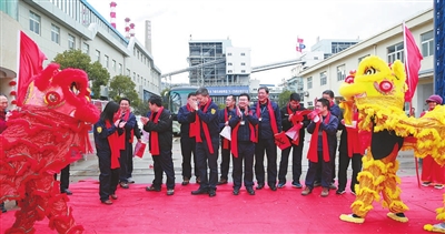 | 本报讯 记者张浩呈 通讯员陈娅报道 昨日,是春节长假后第一天上班,为了能实现新年开门红,我省各地众多企业早早开工抓生产。当天,地处宁波大榭开发区的万华化学(宁波)氯碱有限公司正式开工。为增加喜庆氛围,让员工能够感受到新年的仪式感,该公司举行了一系列开工仪式。一大早,公司高管等来到公司大门口,欢迎员工返岗,并特别邀请社区舞狮队前来恭贺新春。 |