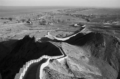 | 逶迤于戈壁滩上的悬壁长城。 |