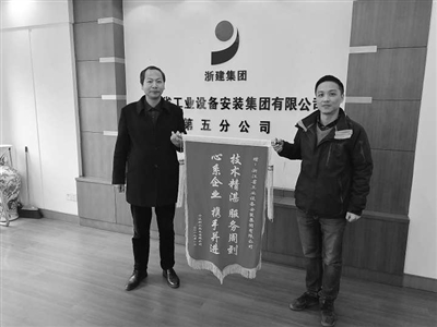 1月18日,宁波榭北热电有限公司大修项目负责人范叶波赴浙江省工业设备安装集团有限公司第五分公司送上“技术精湛、服务周到、心系企业、携手并进”锦旗,对浙江安装五分公司承建宁波榭北热电公司大修项目的优秀表现表示感谢,浙江安装五分公司党委书记、副经理石培基代表浙江安装接受了业主的锦旗。