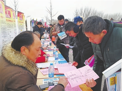 2月17日至18日,来自磐安工业园区、新城区的13家企业与威邦公司一样,在濮阳县招聘会上积极吆喝,向上万名求职者抛去“橄榄枝”。这是磐安县人力社保部门针对企业招工难问题,在企业用工服务月中开展的外省专场招聘会。