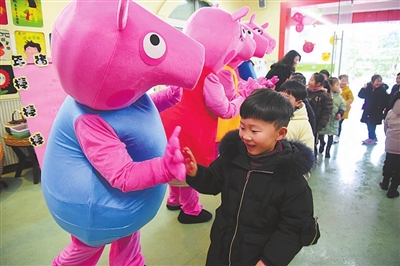 昨日,建德市寿昌幼儿园4位老师统一穿上小猪“佩奇”的服装,以这一活泼有趣的形式,在门口迎接新学期上学的萌娃们的到来,寓意着孩子们在新学期里变得更健康、灵动、快乐和文明!
