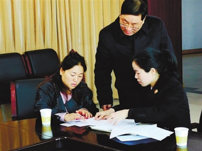 | 温岭一受害人家属在检察官(右一、右二)的指导下申请司法救助。 |