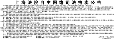 上海法院自主网络司法拍卖公告