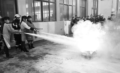 近日,温岭市新河镇总工会联合相关部门在雅雀小微工业园组织消防安全演练,以提升企业职工的防火意识和技能,300多人参加活动。图为企业职工在消防员的指导下,开展灭火演练。