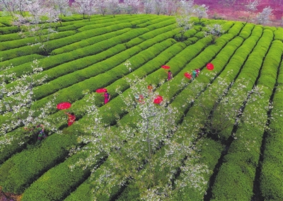 近日,武义县花田小镇层层叠叠的茶园中嫩芽勃发、樱花绽放,满园美景吸引着一拨拨游客踏青游览和拍照留念。粉色樱花在绿色茶园的映衬下分外秀丽,成了当地春季旅游的金名片。通讯员张建成 摄