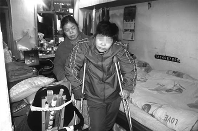 “孩子,等你好了能像正常人走路了,我带你到外面走走看看。以后的路还长,你会越来越好的。”在鄞州区明楼街道明南社区一套33平方米的经济房里,眼前的景象令人为之一震:简陋的卧室里前后摆放着两张床,一只破旧衣橱的几扇门脱落着,残疾人康复器具把卧室剩余位置都挤满了,过道只能容下一人侧身走过。一位六十来岁的母亲,正带着女儿在做康复训练。