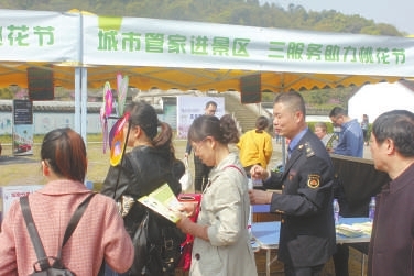 日前,绍兴市越城区综合行政执法局组织人员来到吼山景区,开展“城市管家进景区,三服务助力桃花节”宣传活动。他们和志愿者一起向商铺、游客发放资料,宣传城管、环境保护、文明旅游等相关法律法规知识,耐心接受过往群众咨询,邀请市民积极参与城市管理,合力打造共治共享的美丽家园。