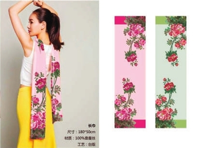 | 著名丝绸企业万事利将饶煜明的国画运用于丝巾设计上 |