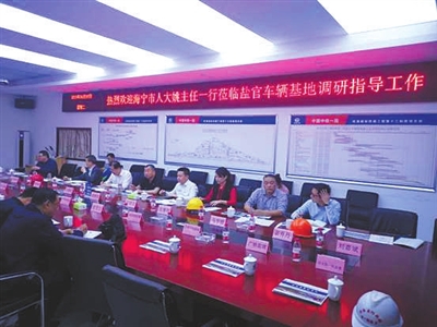 近日,海宁市人大常委会主任姚敏忠莅临中铁一局杭海城际项目部调研指导工作,看望一线施工人员并召开座谈会。海宁市住建局、浙江杭海城际铁路有限公司、中铁杭海城际项目部等领导陪同调研。