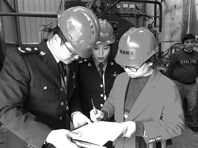 4月上旬以来,针对特种设备突发情况多、操作人员安全意识不高等情况,湖州市长兴县市场监管局深入开展特种设备安全专项监察执法,对企业的特种设备定期检验情况、人员管理培训情况、持证上岗情况、安全技术档案建立情况和应急管理制度建立情况等进行了全方位检查,对发现安全隐患的企业下达特种设备安全监察指令书,责令整改。图为近日该局特种设备安全监察执法人员在一家特种设备使用单位检查锅炉。
