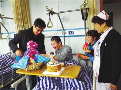 车祸发生后,他的爸爸、伯伯却纷纷不辞而别,最后连电话都打不通了。帮贵就这样被家人“扔”在了医院。医院的医生、护士自发地伸出援助之手帮助他。在医院工作20多年的护工戴琴花无条件地帮忙照顾帮贵,给他翻身、洗漱,照料一日三餐,还抽空教会了帮贵用手指数数,做“谢谢”、“再见”等指令动作。在帮贵18岁生日的当天,本报也特意为他准备了蛋糕和水果,送到病房里。了解帮贵身世的人都说:“这应该是第一次有人为他送蛋糕、过生日。”