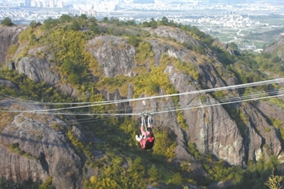 作为浙江省首个高空体验旅游区,景区集国内外主流的高空运动项目于一体,有全长520米、落差180余米的时空穿越玻璃滑道,有让人尖叫不止的凌云玻璃栈道,有充满速度与激情的峡山飞渡高空滑索,更有挑战自我、让人吓得腿软的玻璃观景台(在建)等,这些都会让游客体验到最刺激的感官挑战。