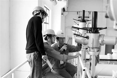 图为参加考核的员工正在中央阀区进行电动阀精准操作技能考核。通讯员应红枫 摄