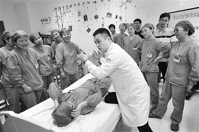 长期高强度、高压力的工作,让很多医务人员存在职业性腰背痛等健康问题。日前,绍兴市人民医院康复中心副主任吴月峰向该院ICU医务人员传授能量节约技术,帮助他们在繁重的工作中更科学、更省力地完成搬运病人、翻身等动作,避免因不当姿势导致腰肌劳损等职业损伤,受到职工广泛好评。