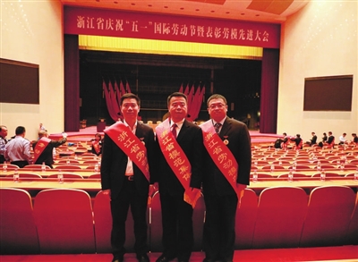 据了解,今年全省交通运输系统获得全国工人先锋号1个,获评省劳动模范21个,省模范集体3个,浙江省五一劳动奖章4个,浙江省“工人先锋号”10个。图为昨天参加浙江省庆祝“五一”国际劳动节暨表彰劳模先进大会的代表,左起分别是郑如春、浙江沪杭甬高速公路股份有限公司党委书记程涛、省劳模浙江交通职业技术学院智慧交通学院副教授戎成。记者羊荣江