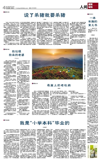 第二次读书。那年夏天,我回到生母那里住了段时间。一天,我与亲哥楼无畏去村边水塘洗澡,因为哥哥的原因,我吃了个酸鼻冲(呛到水),就对着哥哥哭闹起来。哥哥说:“不要哭,我有件‘好事体’,等会讲给你听,一定高兴!”一听是“好事体”,我逼着哥哥马上讲。哥哥说:“你不是喜欢读书吗?教你个办法,你到母亲面前跪下,她不答应你读书,你就不要起来,到时我也会帮你说话的。”