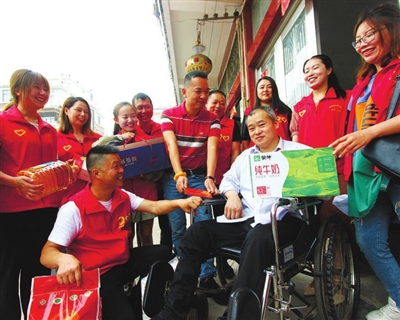 5月19日是全国助残日。当日,台州市路桥区金清镇的党团员青年和公安民警自发开展助残互助活动,为当地的10户残疾人家庭送去关爱,为他们送去慰问金、生活用品,并为他们提供修理拐杖、轮椅及体检服务,鼓励他们坚定意志,共享新时代幸福美好生活。