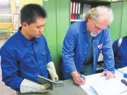 由于成绩突出,2011年公司选派余溆江参加了浙江省人力资源和社会保障厅组织的首批“金蓝领”高技能人才赴德国培训。在德国首都柏林最大的职业教育机构——柏林职业教育集团旗下路德维希菲德培训进修中心,余溆江进行了为期一个月的焊接培训,详细了解了德国的职业教学理念、教学制度,学习了德国的焊接技术以及焊接的教学方法,还考取了欧盟焊接证书。