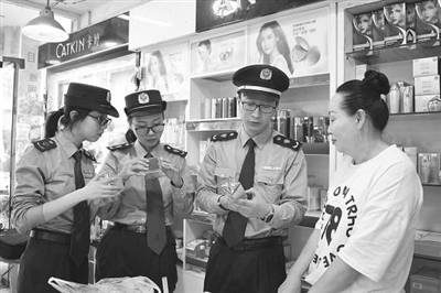 5月下旬以来,湖州市南浔区市场监管局练市镇分局为规范夏季防晒美白类化妆品市场秩序,在辖区范围内开展了针对是否存在销售非法添加禁用物质化妆品、假冒化妆品以及夸大宣传等行为的专项执法检查。图为近日该局执法人员正在仔细核查一款防晒霜的标识、进货票据等。