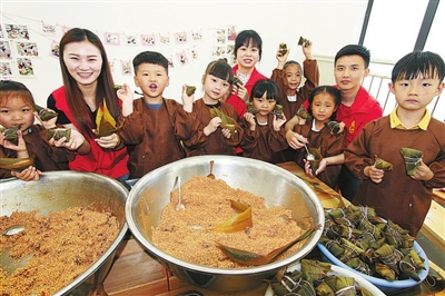 在端午节即将到来之际,近日,台州市路桥区螺洋街道中心幼儿园开展了趣味包粽子活动。小朋友们在老师、家长、党团员志愿者的指导下学包粽子,让小朋友在动手包粽子活动中感受端午传统文化。