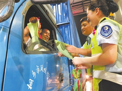 “师傅,小香囊送给您!祝您端午安康!”“师傅,这封‘绿皮书’是我们为您精心准备的节日礼物!”近日晚上,省交通集团沪杭高速桐乡、屠甸两站一线收费人员开展了为过往司乘“送香囊传节日祝福、赠绿皮书表达关爱”活动。精心准备的五彩缤纷的小香囊可解夏夜行车的困乏,涵盖夏季行车安全和货车安装ETC优惠内容的“绿皮书”也契合过往司乘当下所需,赢得了司乘们的一致好评。
