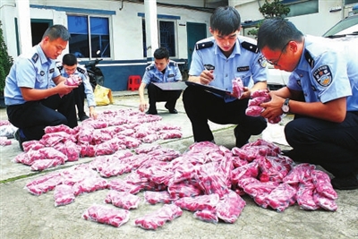 昨日上午,台州市公安局椒江分局三甲派出所民警在分类清点收缴的假公章。