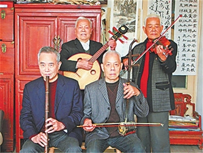 | 2017年,4位老人以同样姿势拍摄的合奏照。方杰 摄 |
