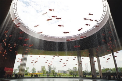 昨日上午,记者在2019年全国“双创”活动周上看到,位于杭州未来科技城学术交流中心如鱼得水广场,人头攒动,一座创意“如鱼得水”天井,犹如“锦鲤”空中游,吸引了众多市民驻足观看。