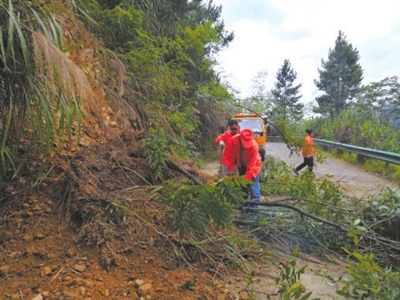 近日,常山县新白线发生山体塌方,全线塌方20余处。常山公路管理局芳村公路站的养护人员带上干粮火速赶往新白线K3+400塌方严重处,清理路面泥沙及断枝。经过2小时奋战,路面终于恢复畅通,养护人员不顾疲惫又赶往下一处排险。徐莹 朱燕平