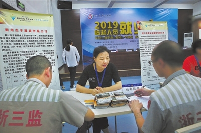 日前,在衢州市柯城区就业局和省第三监狱共同主办的2019年浙江省第三监狱临释放人员就业推介会上,临释放人员贾某某与衢州杰丰服装有限公司当场签订了就业意向书。