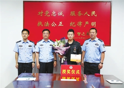 本报讯 通讯员余顺广、曹红兵 记者潘仙德报道 7月3日上午,台州市公安局党委委员、政治部主任林向前专门前往仙居县公安局为该局巡特警大队辅警郑阳阳颁发一等治安荣誉奖章,称赞他为公安争了光,是公安机关的好榜样,为社会传递了正能量。目前,仙居县公安局正启动郑阳阳见义勇为确认程序。