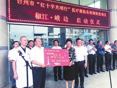 本报讯 通讯员陈胡南 记者潘仙德报道 近日,台州市卫健委、台州市红十字会、台州市立医院、椒江区政府等联合在四川省乐山市峨边彝族自治县启动“台州市红十字光明行”医疗救助东西部扶贫四川峨边项目,为峨边90名困难白内障患者免费手术。