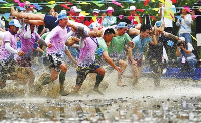 近日,浙江省全民健身第二届生态运动会岱山站暨中国·秀山岛海泥狂欢季在秀山滑泥公园拉开帷幕,参加活动的运动员们在泥潭中尽情体验原生态的泥狂趣味运动会。通讯员林上军、沈磊 摄