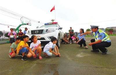 昨日,台州市路桥区蓬街镇交警来到当地浦东村文化礼堂,向参与“春泥计划”活动的小朋友现场讲解车辆盲区常识,教育小朋友在游戏、玩耍、行走时远离车辆盲区。