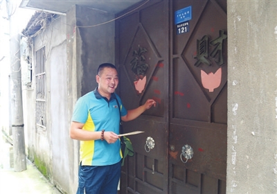 | 图为于泰潮在投递。 俞劲松 摄 |