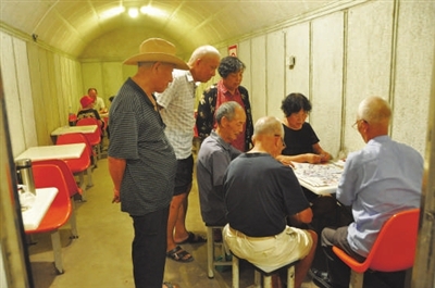 7月20日,不少市民在金华市人民广场防空洞纳凉点避暑。据了解,防空洞内配备休息长椅、除湿机、饮水机、电视机等设施。可供市民纳凉、看报纸、打牌、听音乐、聊天等。当天的最高气温达到了36℃,洞内温度估计在20℃左右,非常凉爽。通讯员孔德宾 摄