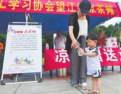 炎炎夏日,临海市望江门古城墙边,一群头发花白的老人为过路市民免费提供茶水,过往路人尽情喝,不用一分钱。这个免费凉茶摊由临海市总工会退休职工学习协会创立,已经义务服务了29年。