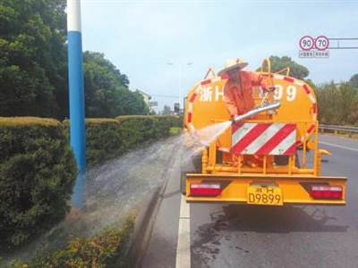 连续高温少雨,公路树木“干渴”难当。连日来,江山市公路段积极组织人员利用夜晚和凌晨时间,为公路绿化浇水“解渴”,以防绿植脱水枯萎。