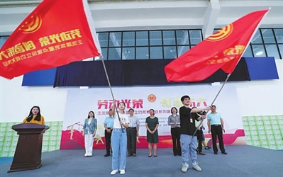 昨日上午,由湖州市委宣传部、市总工会主办,湖州广播电视总台、湖州日报社承办的“劳动光荣·创造伟大——主流媒体进重点建设立功竞赛项目”系列宣传活动启动仪式,在湖州南太湖高新区区域职工之家举行。来自湖州日报社、湖州广播电视总台和本报等新闻媒体记者20余人接受了湖州市总工会特邀宣传员聘书。接下来,记者们将走基层、进企业、访职工,用心倾听职工群众声音,讲好职工故事,用镜头捕捉时代变迁,为百姓奉上接地气、有温度的新闻报道。图为新闻采访出征授旗仪式。