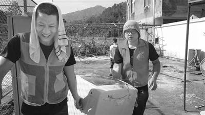 温州市总工会职工技术协作中心副主任周跃介绍说:“服务队一直关注灾区的情况,在了解到群众的需求,以及屿北村等地通车通电,有条件开展服务的情况下,我们联合市工商联、市家电协会,迅速发起走进受灾百姓家中,免费维修家电活动倡议,得到了各自服务队成员的积极响应。”