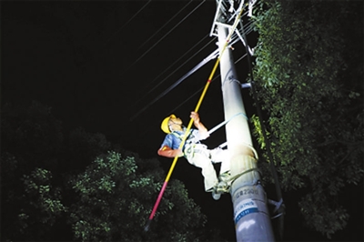 现场受洪水侵袭严重,抢修难度大,队员们只能靠着手电筒的灯光,一步一个脚印检查每一基杆塔,每一米导线。截止到夜里11点50分,已成功为城区江南、汇丰等4条10千伏主线路成功送电。最后一支抢修队伍返回驻地,已是深夜2点15分。与时间赛跑,与光明同行,“抢休”无缝衔接,开化供电公司连夜作战,彰显国企担当,给临海市民最安心最真诚的守护。