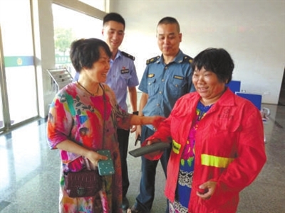 余翠仙在原地等待了约一小时期盼失主来认领无果后,当即将捡到的皮夹交给辖区湖镇派出所民警,通过民警当面将钱包交到失主手中。失主很是感动,当场掏出几百元表示感谢,被余翠仙谢绝。事后,失主特意制作了一面锦旗送给了余翠仙,她拾金不昧的良好品德也受到了大家点赞。