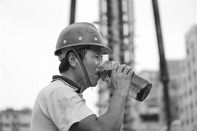 | 昨日,虽已进入“伏末”,但气温依然达到33℃,且非常闷热。记者在杭州地铁10号线学院路站施工现场看到,工地上几名工人正在搭建桩基,一位来自安徽淮北的张师傅说,高温天气离不开水,每天至少喝掉自泡的4壶茶水,项目部每天都会备好开水及时补给。 见习记者邹伟锋 摄 |